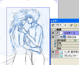 私の場合、決定線があまりクリアじゃないので、描いては青変換、描いては青変換、を繰り返し、いらなくなったレイヤはすぐに削除。