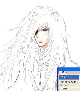 色つけの時の事を考えて、主線レイヤ、髪レイヤ、瞳レイヤ、などに分けて描く。