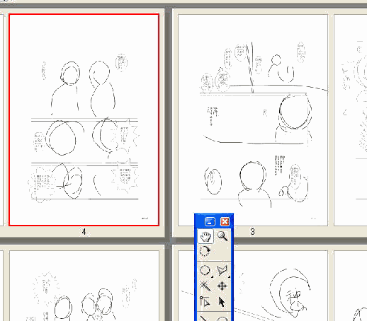 コミスタは削除ややり直しが簡単にできるので、カット割りから下絵、ペン入れと全て同じファイルでしてしまいます。