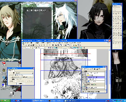 アタリから下絵からペン入れから、同じ画面にレイヤ重ねて描いてるので、見苦しい画面ですんません。