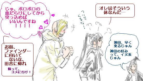 今週もツバを飛ばされながらゴズに怒鳴られても、反論もしない神田が萌え。